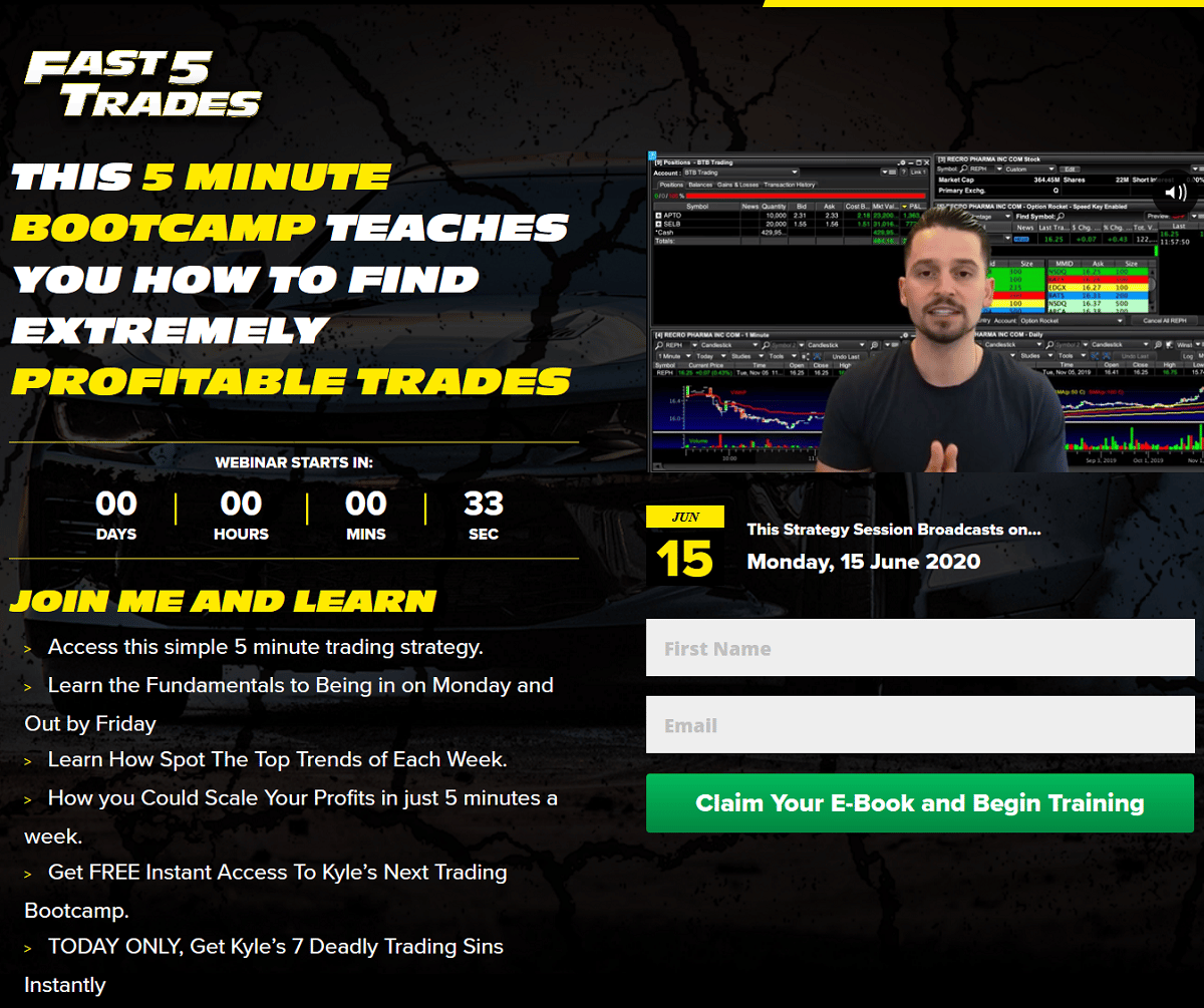 Each and every day he scans for best options. He spent countless hours finding these opportunities by analyzing news, inside activities, earnings reports, volumes and even stock trends. After all this work, he normally sets his eyes on a group of stocks that he is confident with. At the beginning of each week Kyle will send you an email with his top trades. You will get his target buy and sell range. He calls them his “Fast 5 trades”. As he said “You can set them and forget them”. Five days for fast profits.